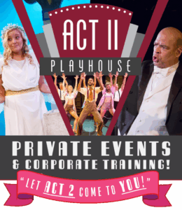 At Act II Playhouse, we believe laughter and storytelling don’t just belong onstage – they can bring people together anywhere. That’s why, in addition to our mainstage productions, we’re thrilled to offer a menu of services designed to make your next gathering unforgettable.